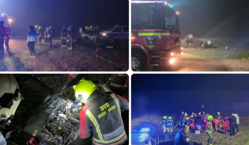 – Nakon stupanja u kontakt s VOC-om putem radio veze, saznajemo da je vozilo na krovu, u njemu su bile 4 osobe od kojih su dvije same izašle van, a dvije su još uvijek u vozilu te da je obaviještena Hitna medicinska služba, DVD Sveti Đurđ i policija. Na mjesto događaja dolazimo otprilike u isto vrijeme kad i DVD Sveti Đurd te HMS Ludbreg, a ozlijeđene osobe su zajedničkom koordiniranom akcijom izbavljene iz vozila te su sa dva vozila HMS prevežene u bolnicu. Tijekom intervencije vršimo regulaciju prometa, a nakon provedenog uviđaja vozilo je postavljeno na kotače, otpojen je akumulator te vršimo čišćenje prometnice – objavili su vatrogasci dodajući da je u intervenciji sudjelovalo 9 članova DVD-a Hrženica sa jednim vozilom, DVD Sveti Đurđ sa 10 članova i dva vozila, HMS sa dva tima te djelatnici policije.